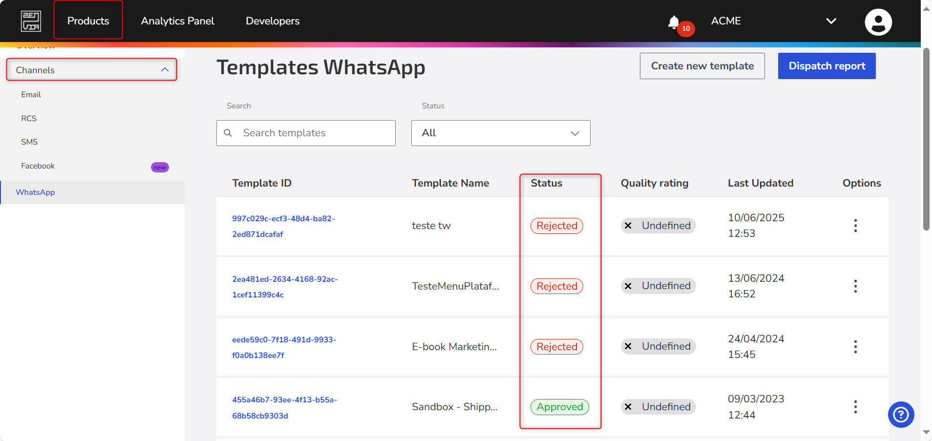Template statuses are available in the Zenvia platform. There, you can track the progress as the status changes from Under review to Approved. Within 24 business hours after WhatsApp approves your new templates, we enable their use in your Zenvia Conversion conversations.
