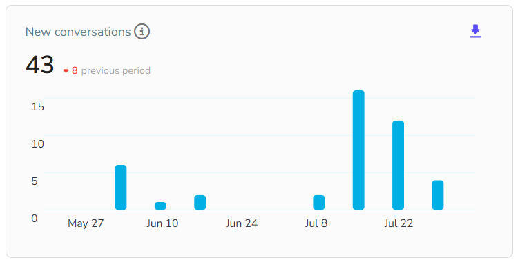 To access this feature, simply go to Reports > New contacts and conversations. All metrics have alongside them the comparison of this number in real-time with previous periods.