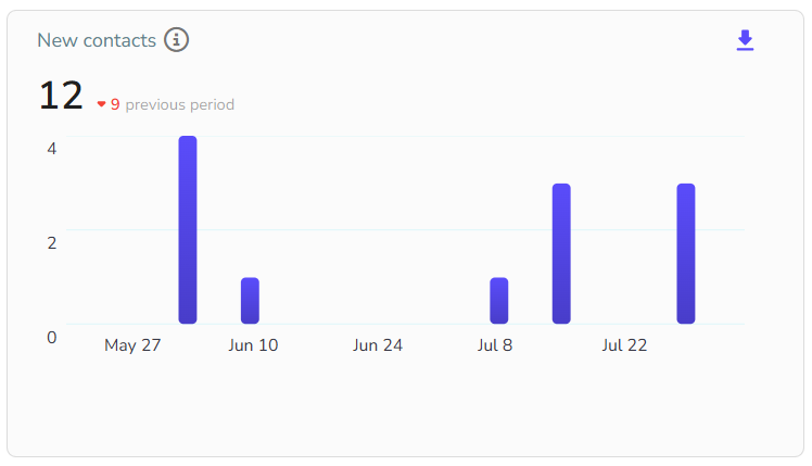 To access this feature, simply go to Reports > New contacts and conversations. All metrics have alongside them the comparison of this number in real-time with previous periods.