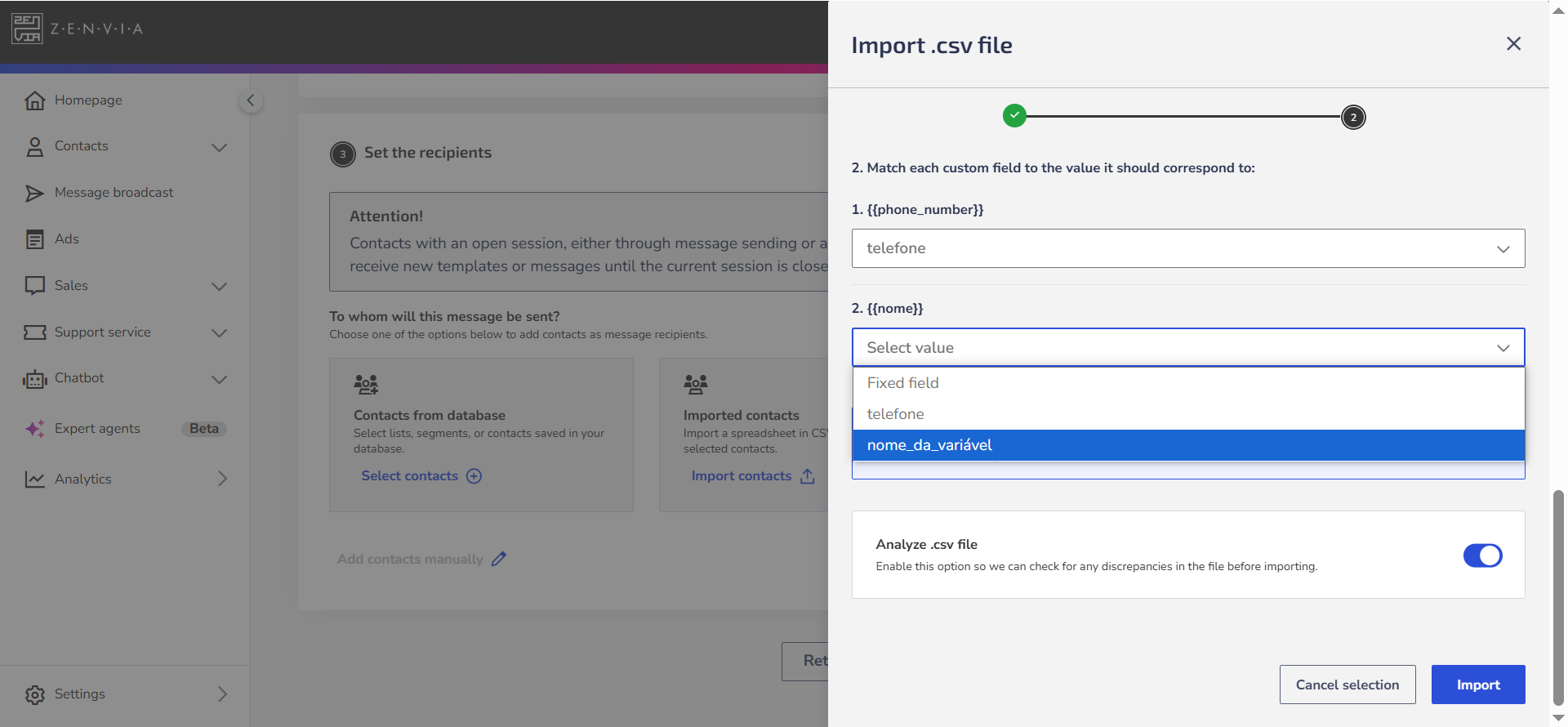 - Enable the option Analyze .csv file to review your file and check if it is ready for use.