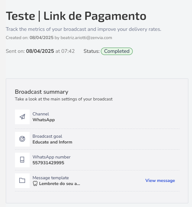 Broadcast report in Zenvia Customer Cloud