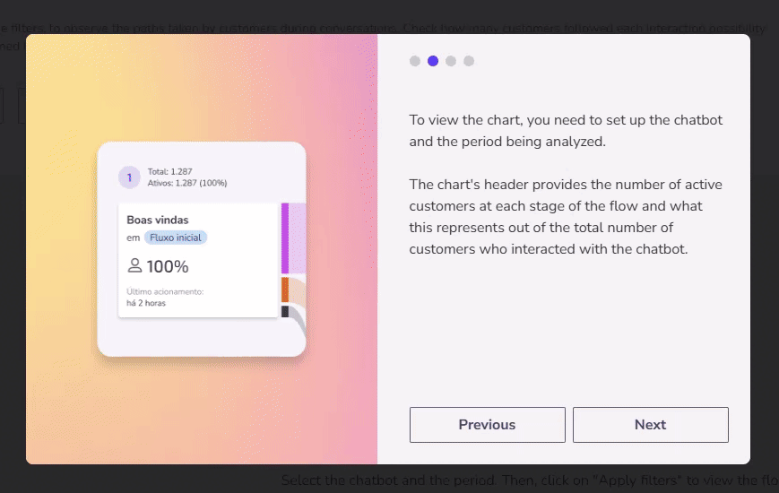 In Zenvia Customer Cloud, the Flow Maps functionality allows understanding and optimizing the customer journey when interacting with the chatbot. It provides valuable insights into how users progress through the conversation flow and highlights the points where drop-offs are most frequent.
