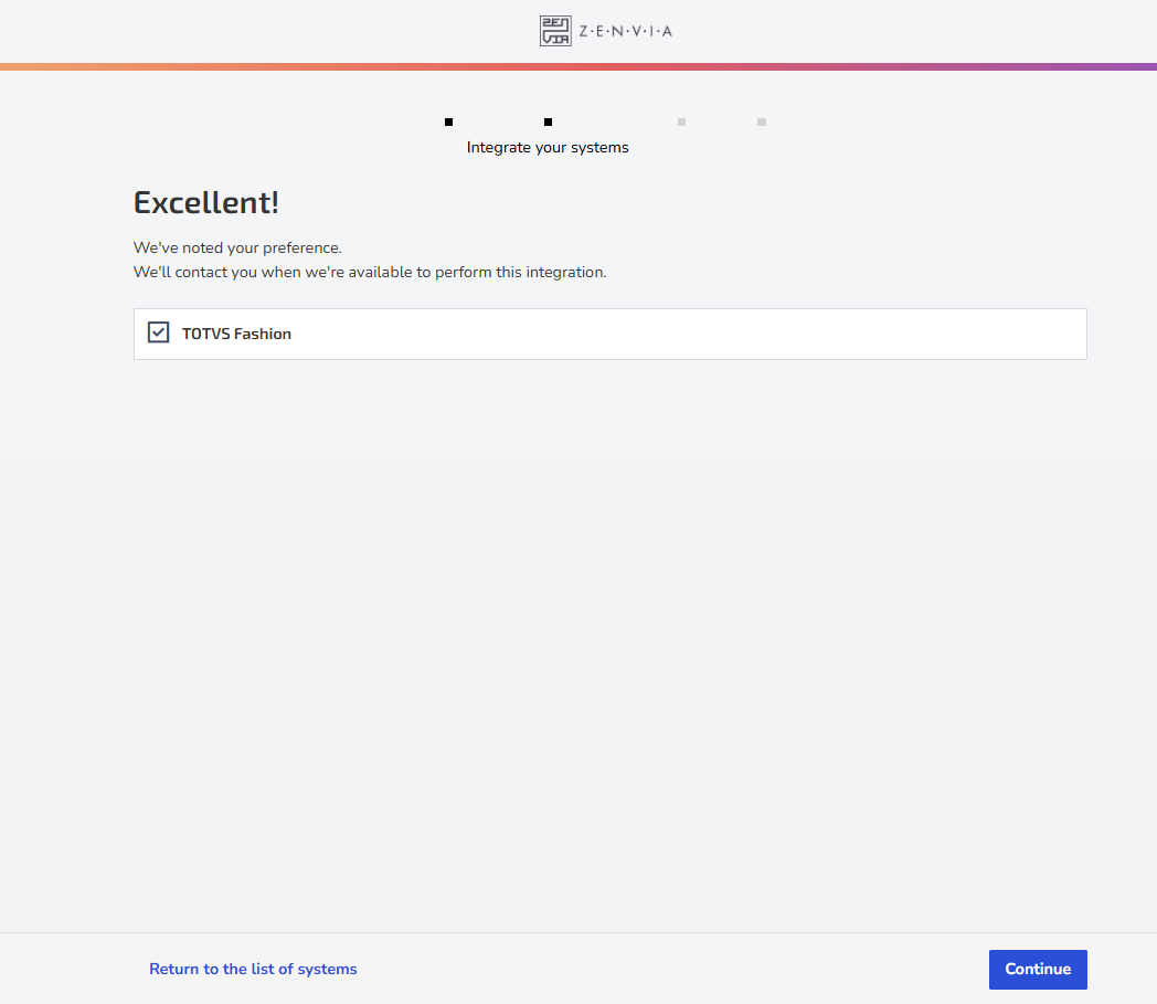 After selection, you'll be directed to the integration step for each selected system.