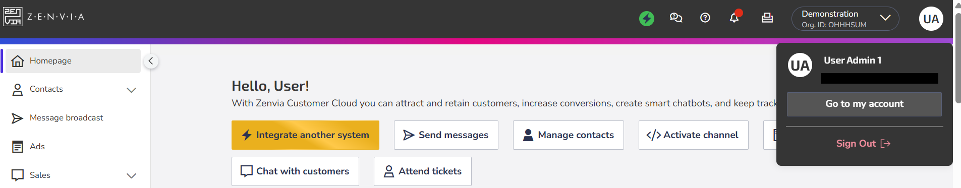 1. Go to app.zenvia.com, and if you're not logged in, log in with the current username and password for the account you want to update.
