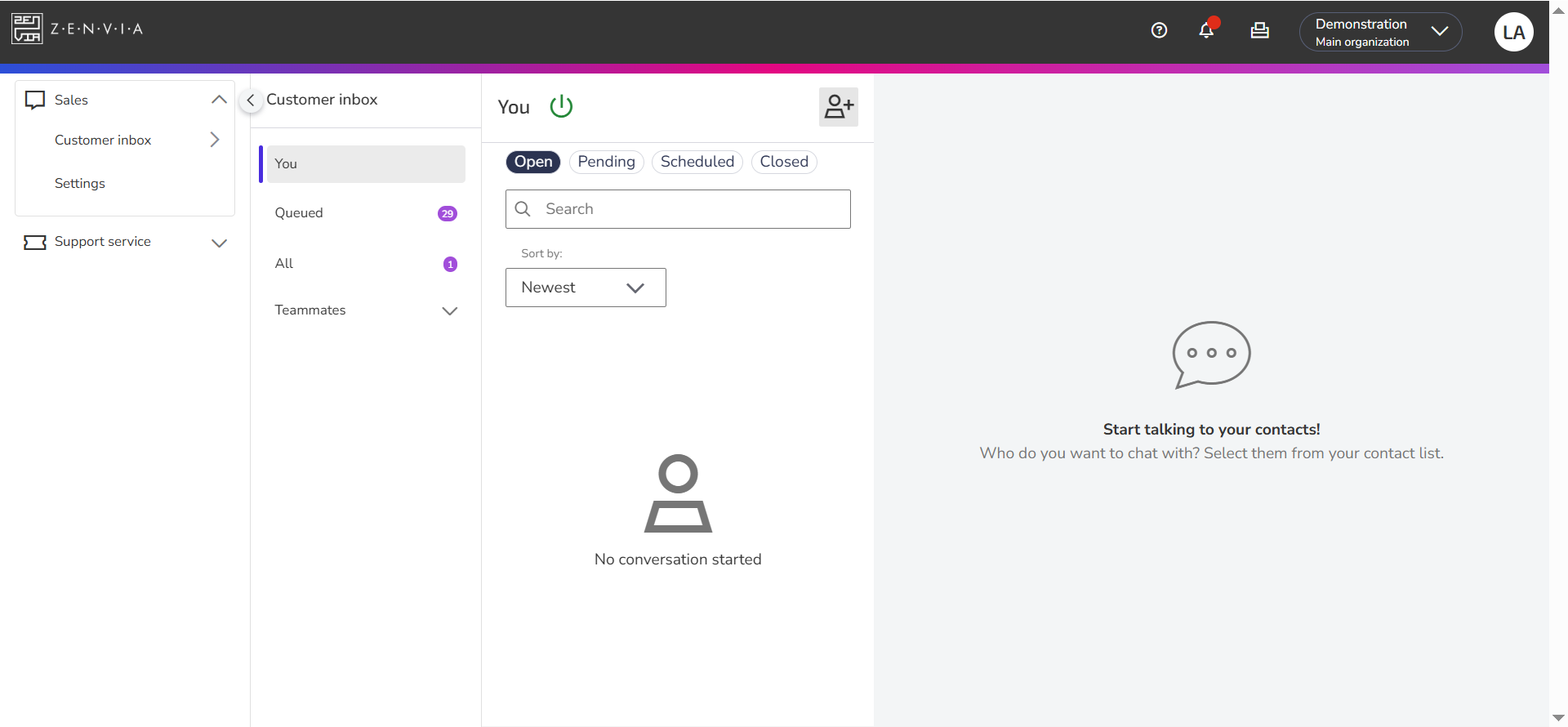 AdminThis profile has full access to Zenvia Customer Cloud, including all features, reports, and advanced organization settings.