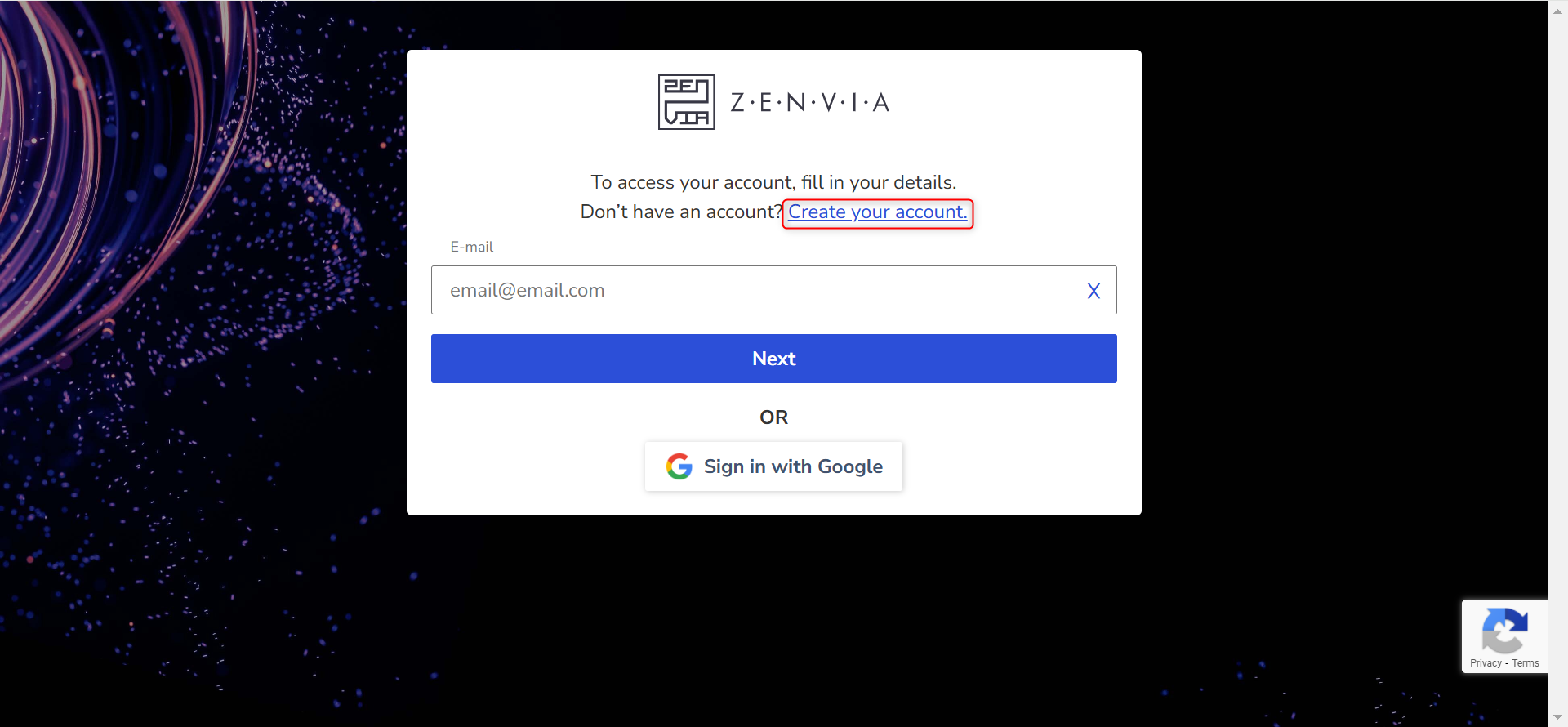 To access the Zenvia Customer Cloud platform for the first time, it is necessary to create an account before attempting to log in.