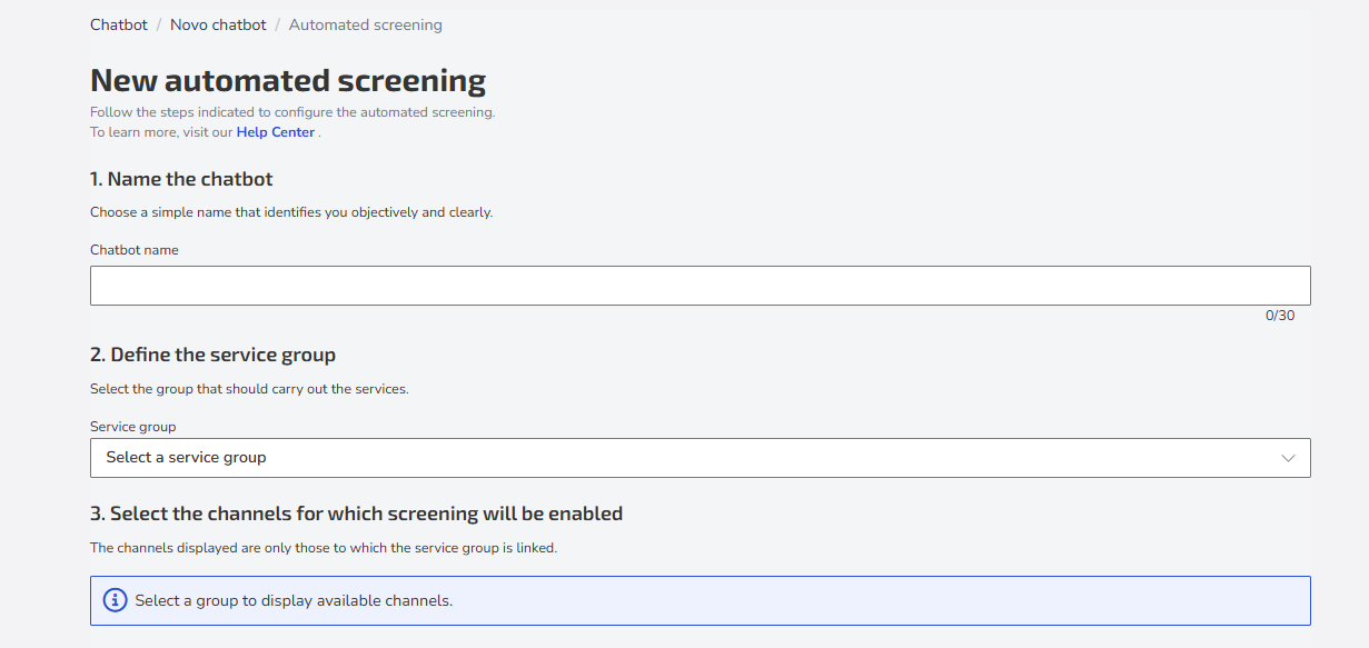 Important: If the chatbot is not configured to ask for the customer's name and the channel is WhatsApp, Facebook, or Instagram, the name registered on the channel will be automatically used in the human support or commercial service journey.