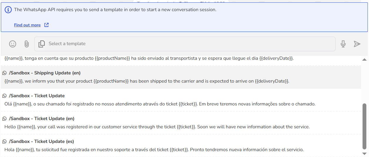 💡 Tip: If the contact has an open session or is in a chatbot, it will not be possible to send message templates until the current session is finished or expired.