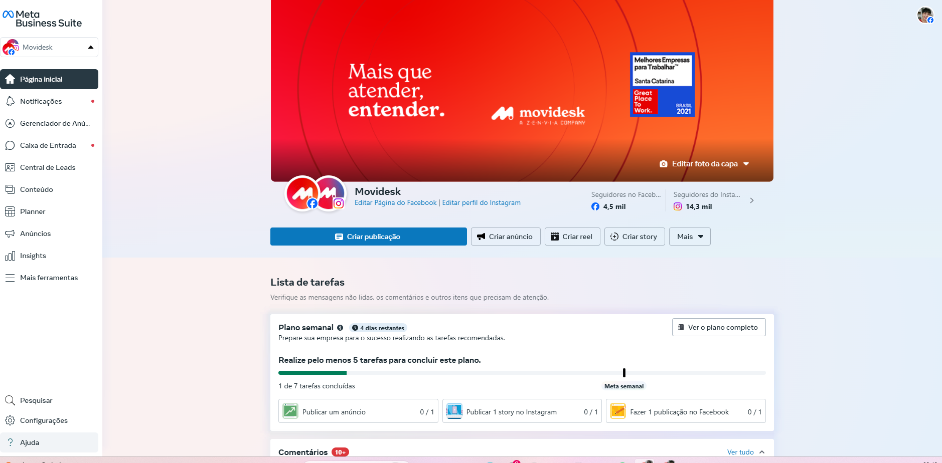 All these accounts (items 2 to 5 above) must be linked to the Meta Business Suite to centralize information management, as shown in the image below: