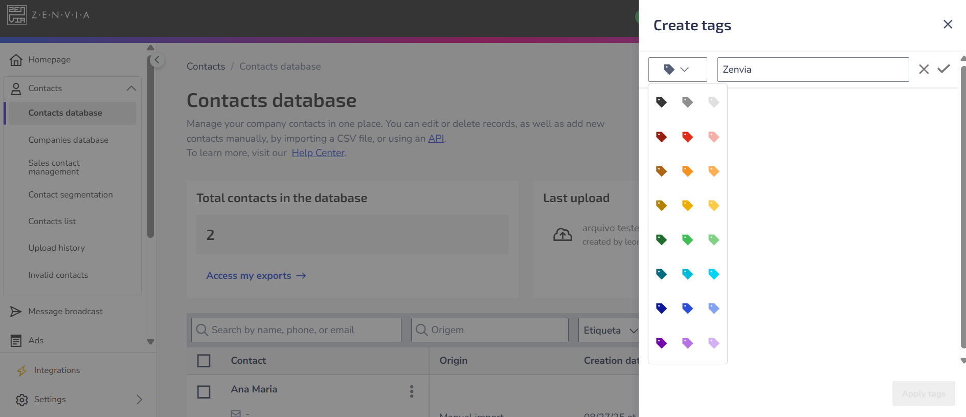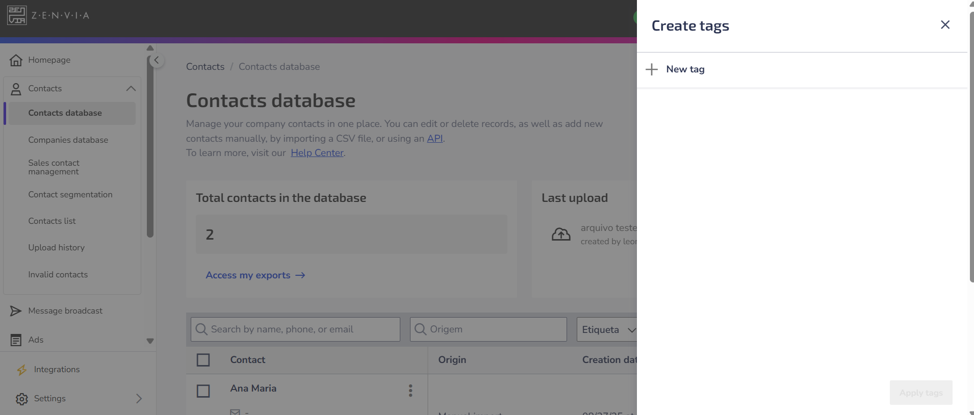 How to create and apply tags to contacts in Zenvia Customer Cloud