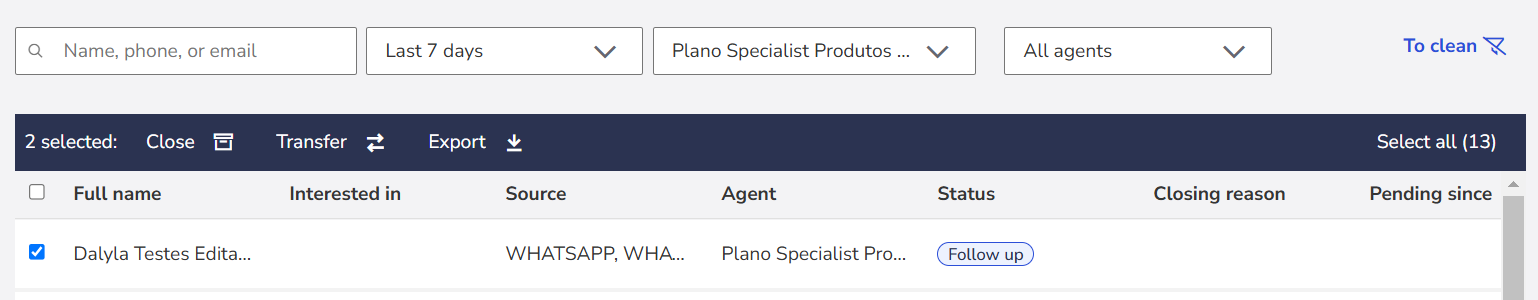 Perform bulk actions: Close, transfer and export contacts
