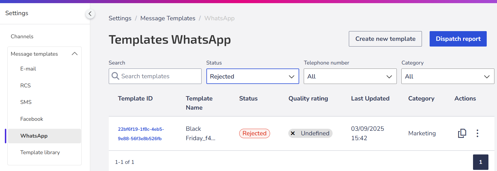 - Go to Settings > Message templates > WhatsApp.