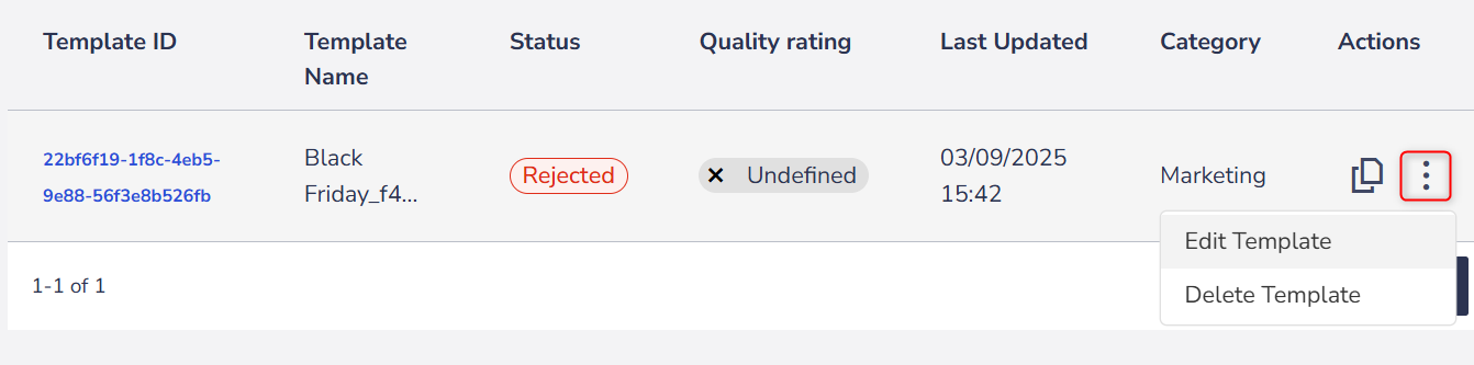 When accessing Settings > Message templates > WhatsApp, if you see the status Rejected next to the template name, it means Meta has rejected the content.