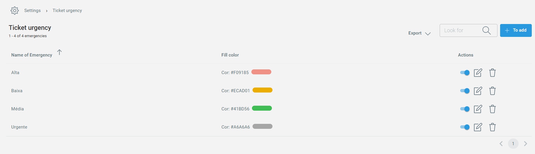 Urgencies determine the priority of tickets, helping agents identify the severity of each case. They are associated with Categories and can be adjusted as needed.