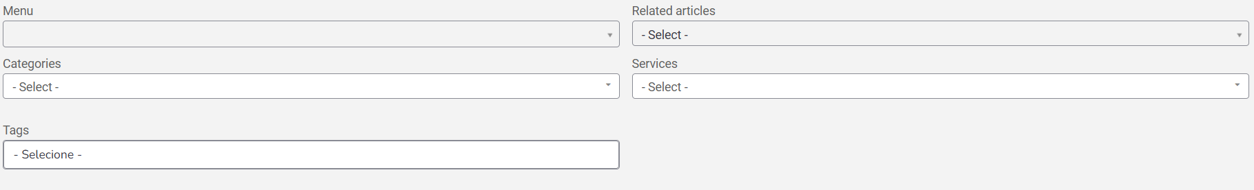 6. In the Classification tab, fill in the information about Menu, Categories, Tags, and Related Articles;