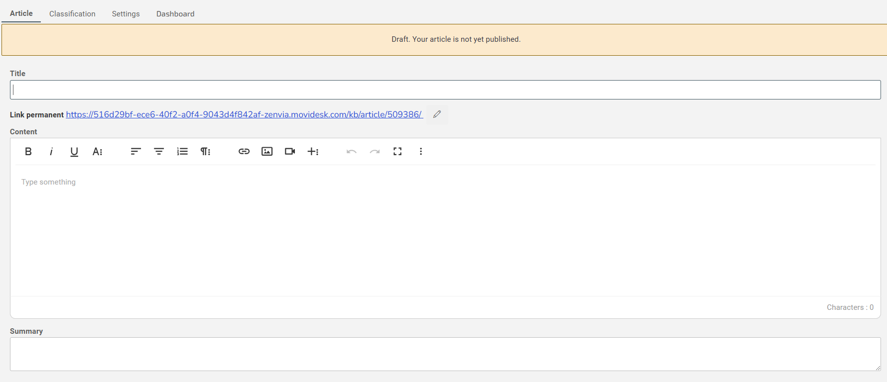 4. In Content, write your article and use the text editor to format it;