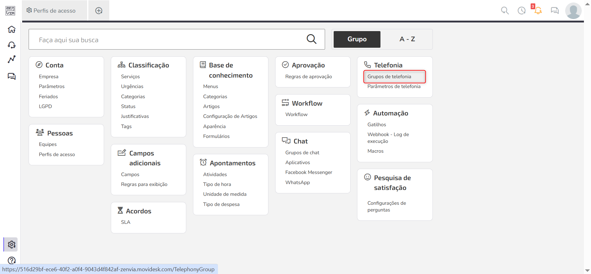 By default, the creation of telephony groups is restricted to administrator profiles. To grant access to other profiles: