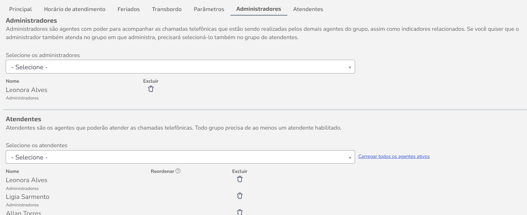Agents: Agents are the users enabled to receive calls in the group. Each group must have at least one agent, but there is no maximum limit.