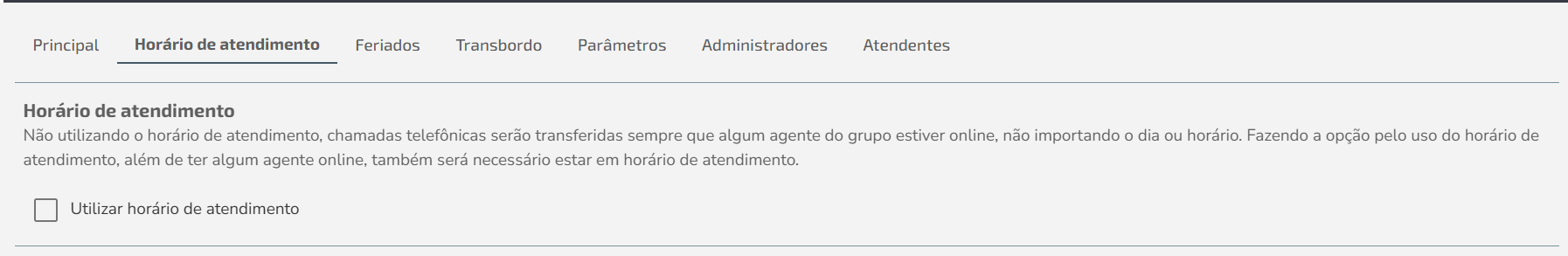 Service hours: Set the hours during which calls can be received. If you choose not to use service hours, phone calls will be transferred whenever a group agent is online, regardless of the day or time. If you choose to use service hours, the agent must be online and within the defined schedule.