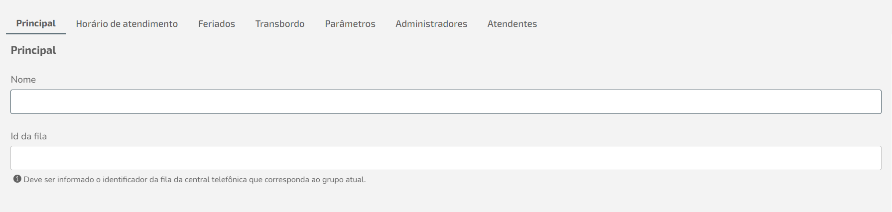Main: Define the name of the service group and enter the queue ID, which must be the identifier of the telephony center's queue corresponding to the current group.