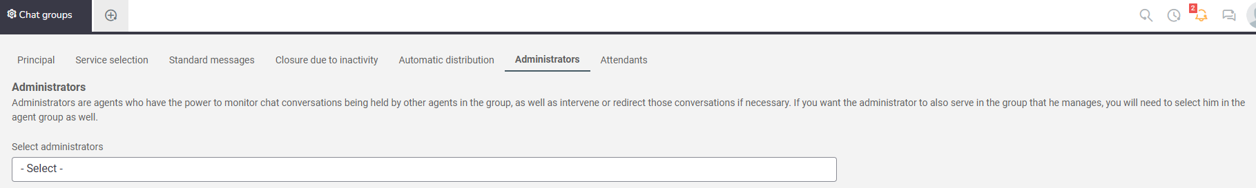 In the Select Administrators field, choose the person who will be given access to the Chat management screen.