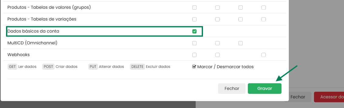 ⚠️ Attention: Keep the key active! Make sure the key status is set to “ACTIVE: YES” (ATIVO: SIM). An inactive key will prevent synchronization between platforms.