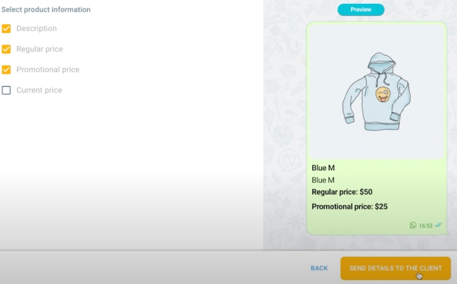 - Click the Send details to customer button. The message will be sent directly to the contact.