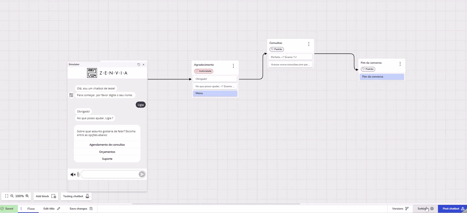 4. See if the chatbot sends you the inactivity message correctly.