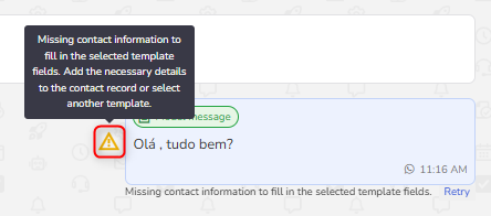 Missing contact information to fill in the fields of the selected template. Add the information to the contact's record or select another template. | Check if the contact's record is complete (name, phone number, email, etc.). If the template requires additional information (variables), add them to the record. To edit the contact's record: Go to the Contact database, click on the contact's name, and select Edit details. |