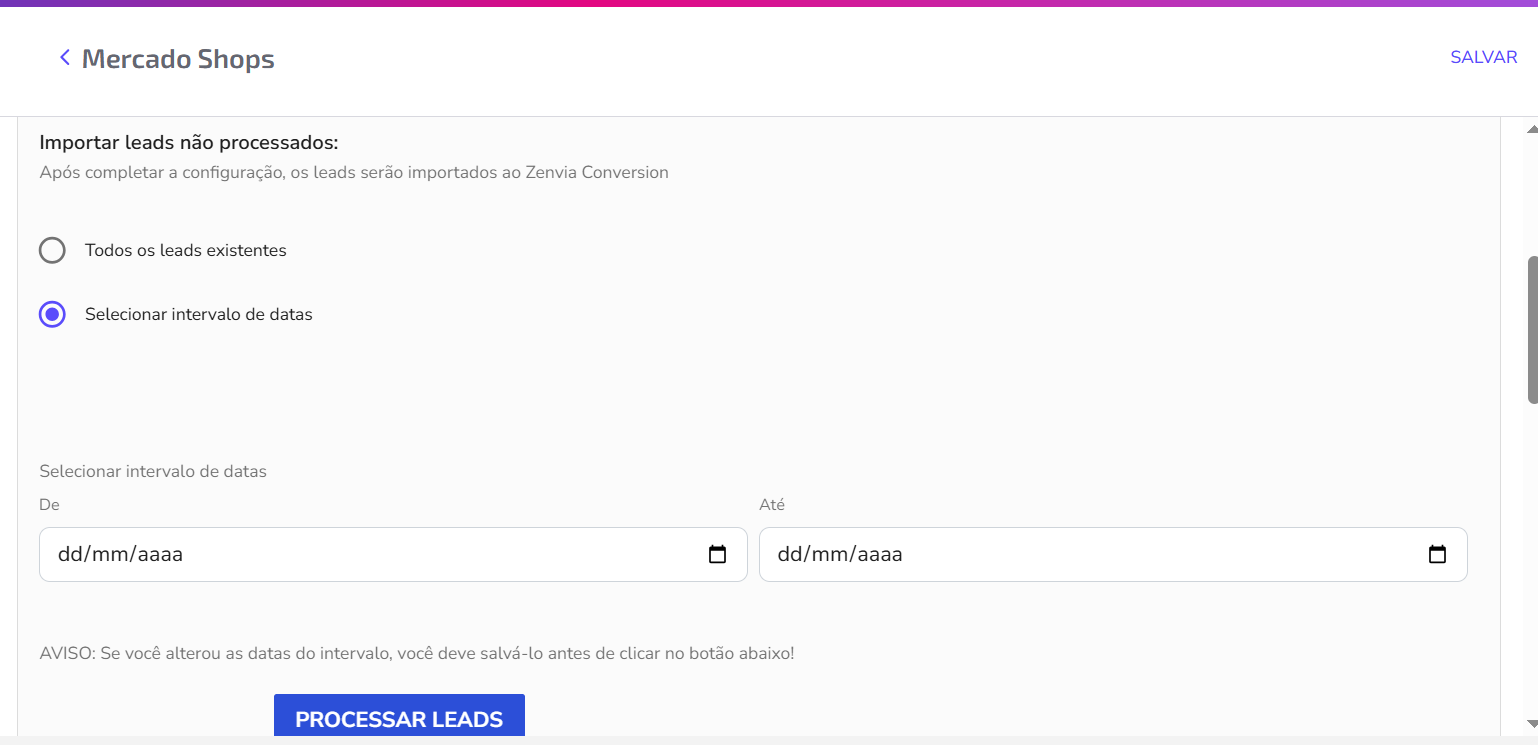 1. Import your contacts into Zenvia Customer Cloud. Select a specific date range for your existing leads.