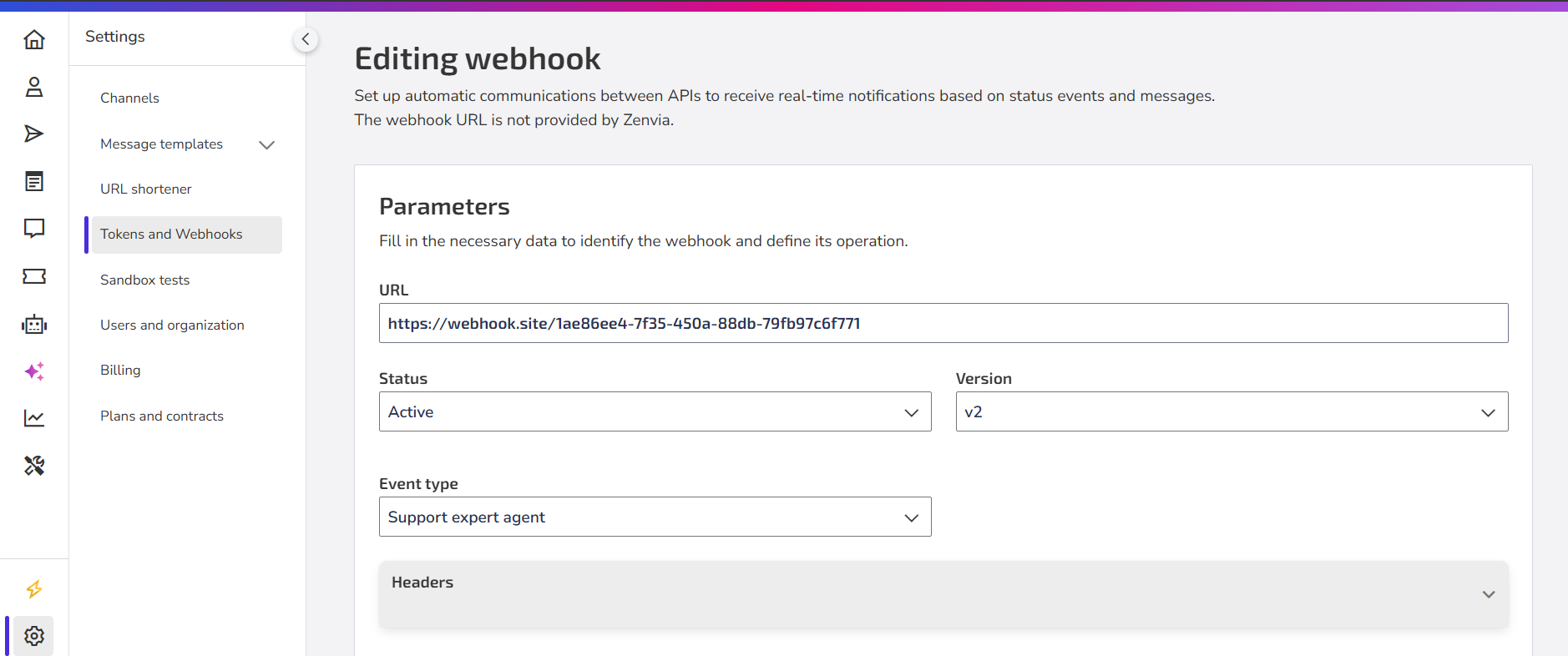 For this action to work correctly, a webhook configured with the event type "Support Expert Agent" must exist. This webhook is responsible for receiving the data sent by the agent.