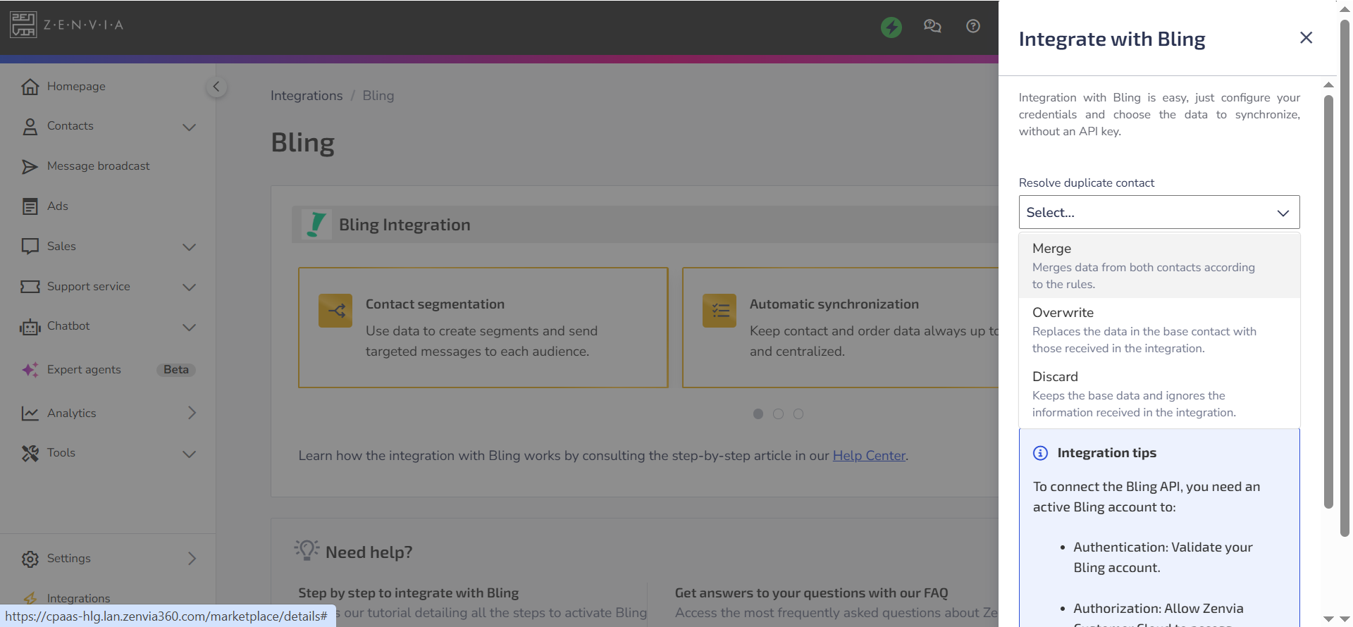 When choosing Discard, duplicate contacts are ignored, keeping only the existing records in Zenvia Customer Cloud.