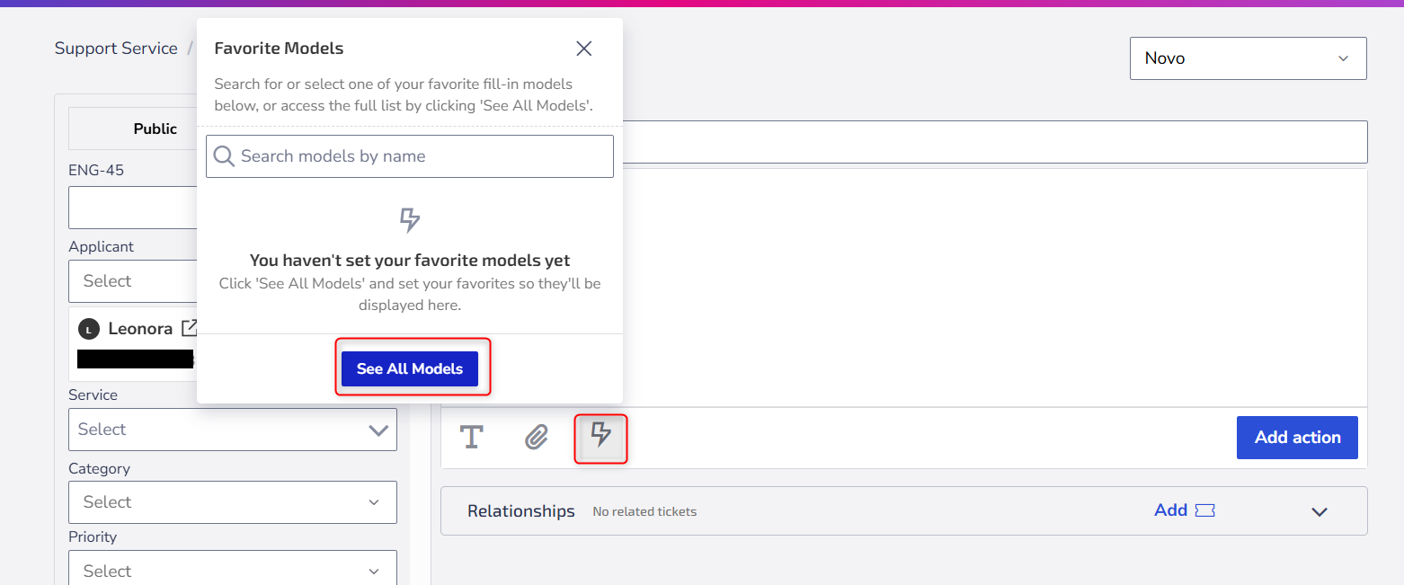 After creating the models, you can apply them directly to a ticket: