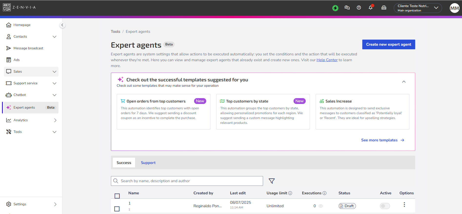 In this article, learn more about expert agent templates available from Zenvia and examples of how to use them.