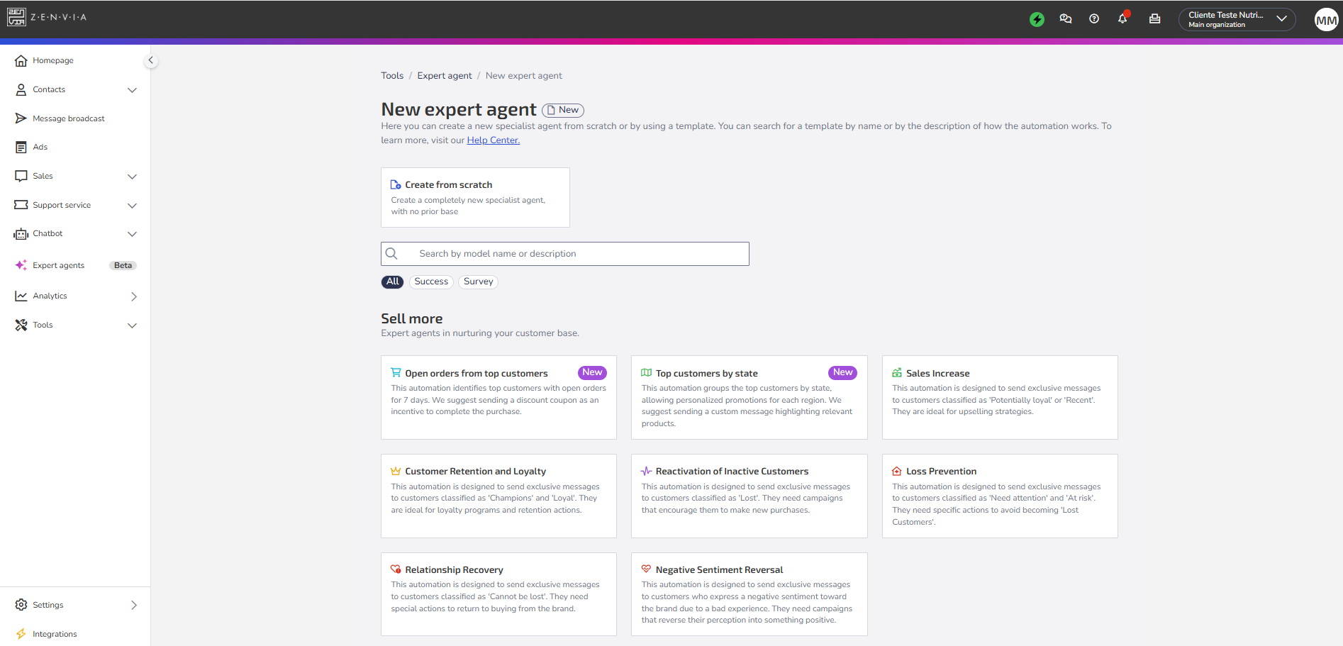 To access this feature, go to Zenvia Customer Cloud > Expert Agents > Success tab > View the suggested success models for you > See more models.