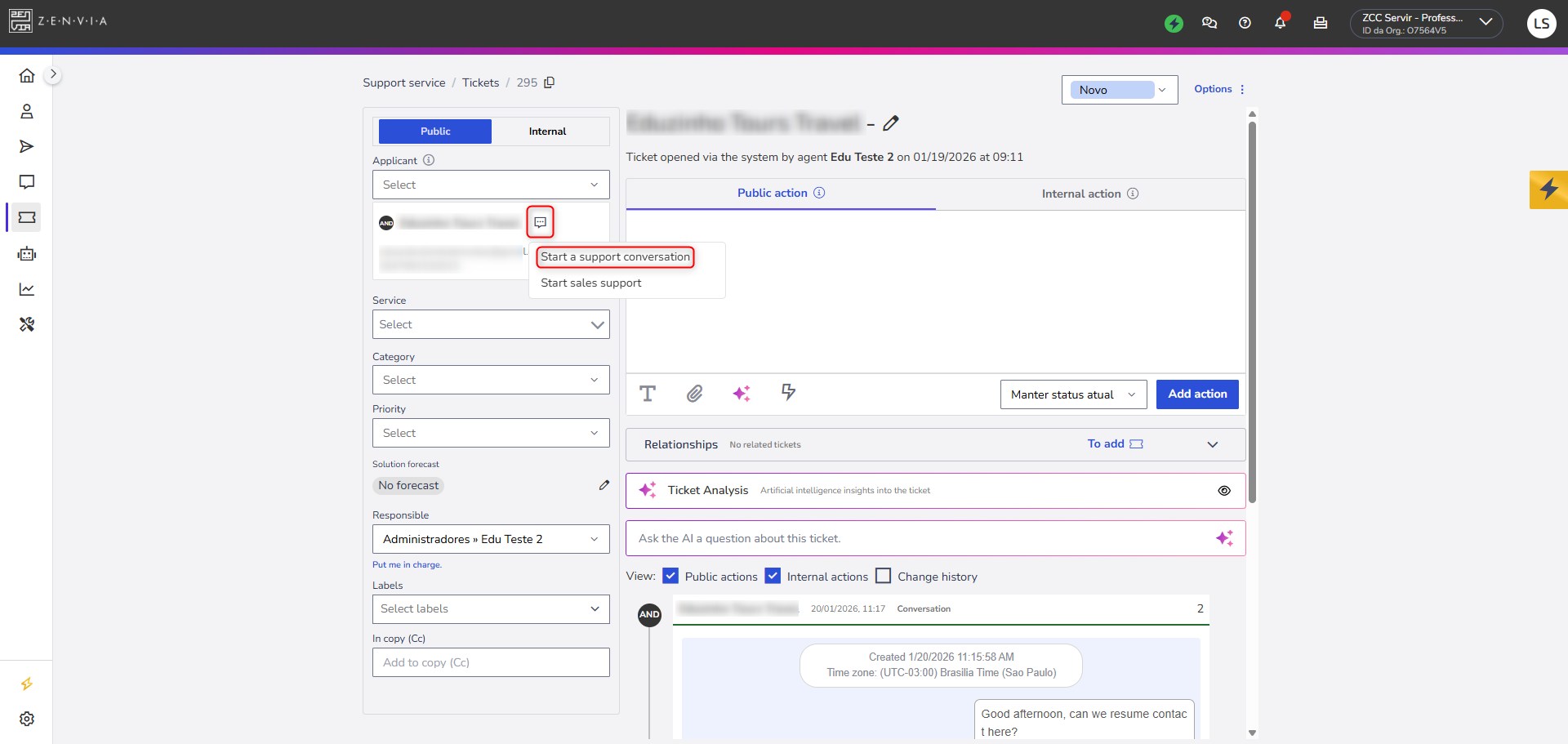 This feature is available for Agents, Advanced Agents, Operators, and Administrators who use the Support service module in Zenvia Customer Cloud.