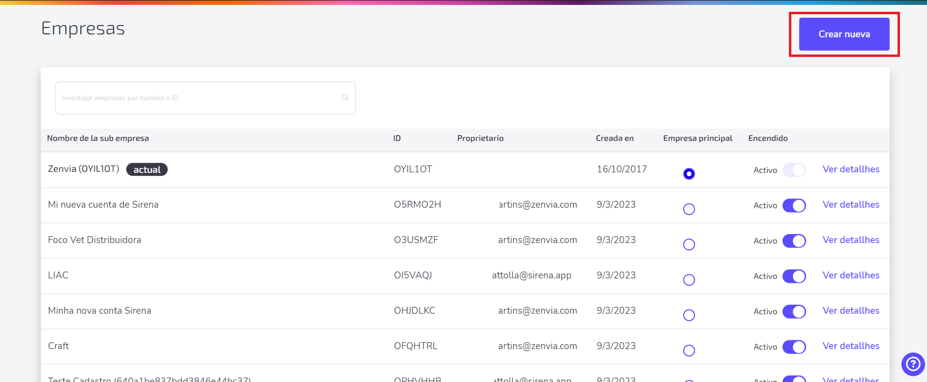 4. Después de rellenar cada uno de los campos, haz clic en Crear sub empresa.