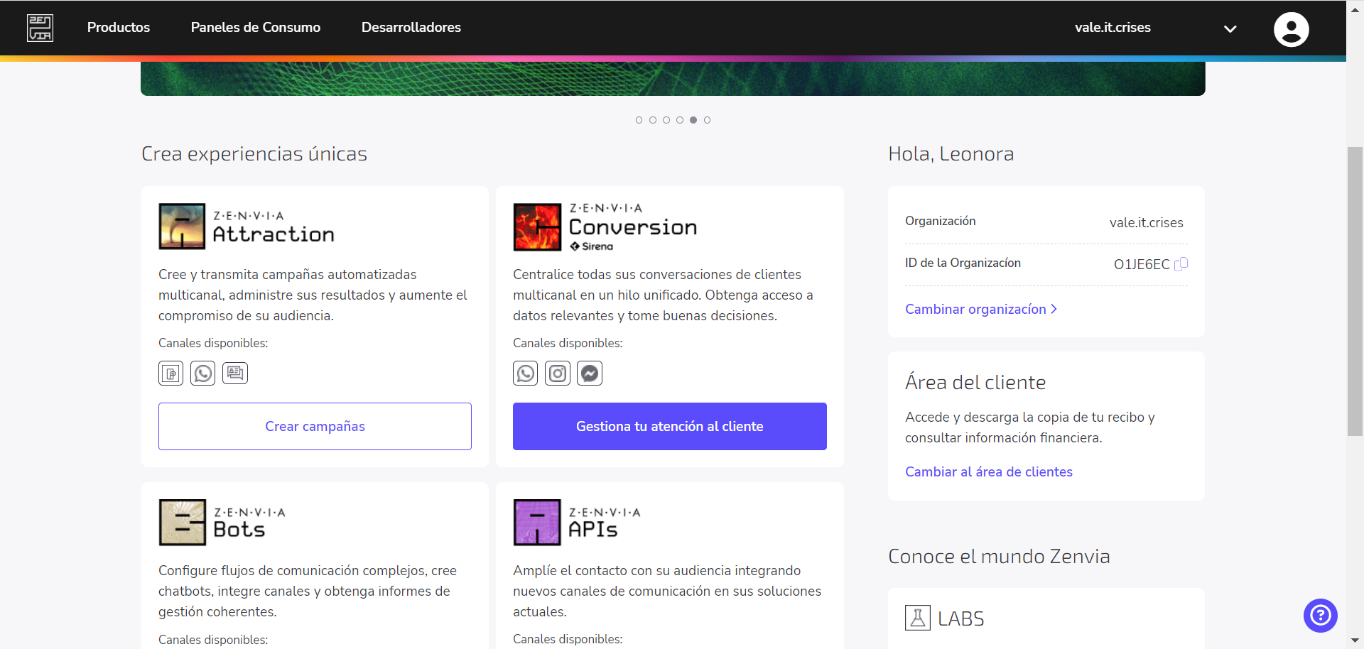 💡 Sugerencia: El área de cliente solo está disponible para usuarios con perfil de administrador. Puedes ver quiénes son los usuarios con ese perfil en la página de la organización.