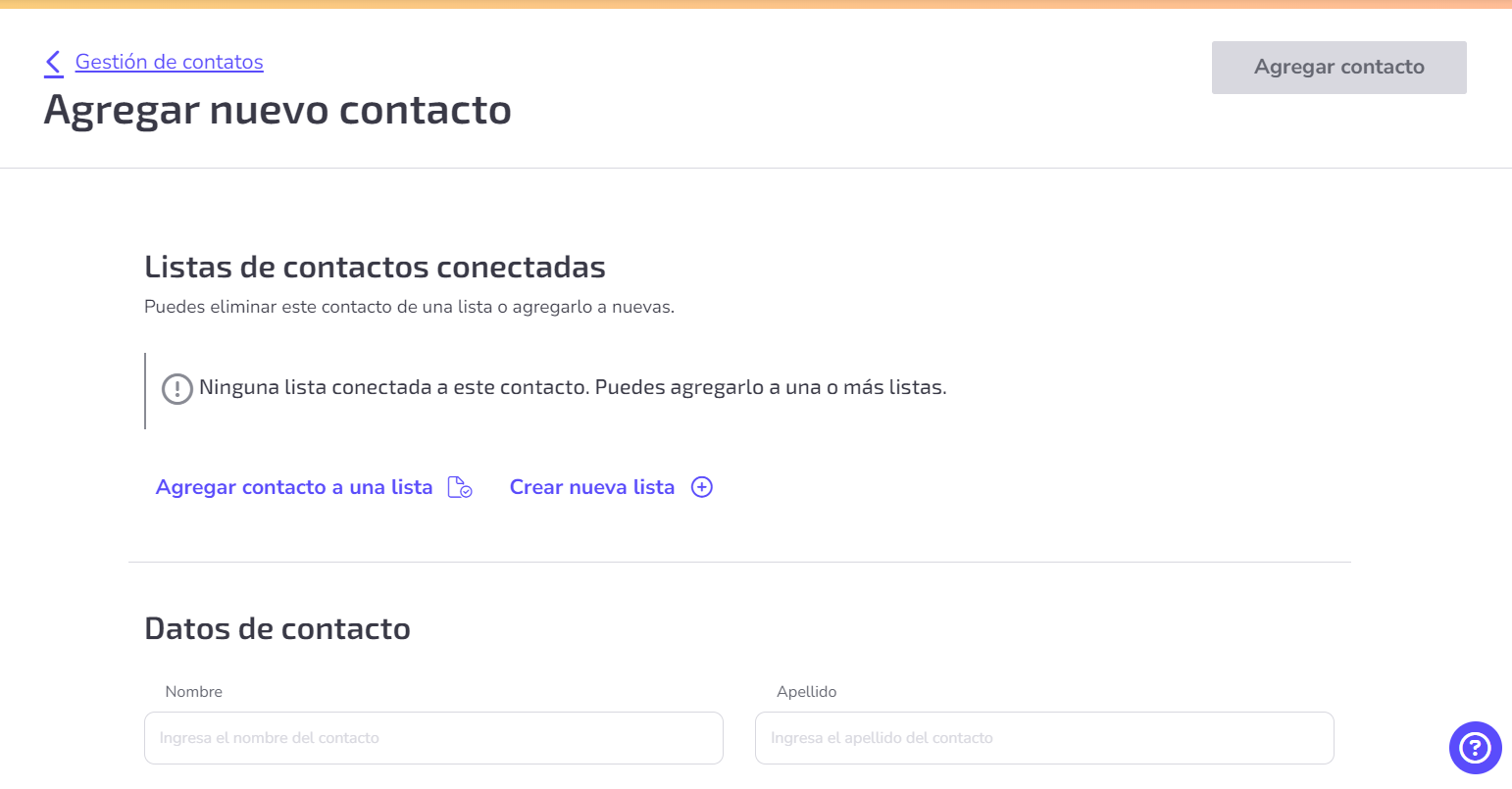 Después de agregar la información deseada, haz clic en Agregar contacto para completar el procedimiento e incluir el contacto en la lista seleccionada.
