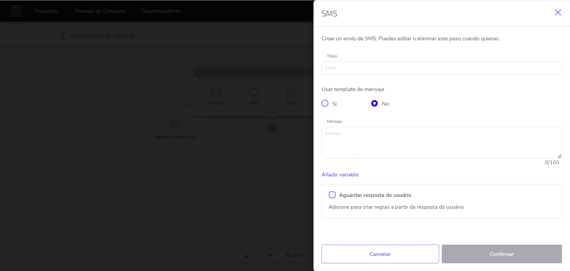 - La opción de añadir variable que permite utilizar una variable en tu mensaje;