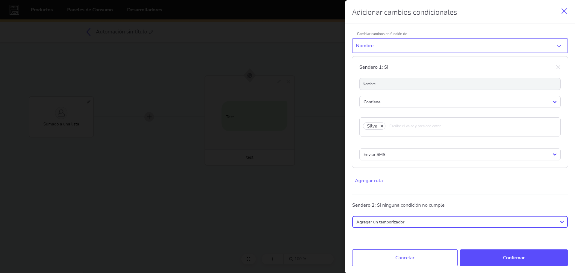 Después de configurar su condición, haz clic en el botón Confirmar.