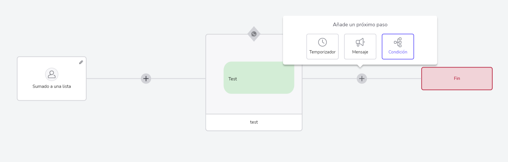 Para crear esta etapa, haz clic en el botón y, en seguida, en Condición.