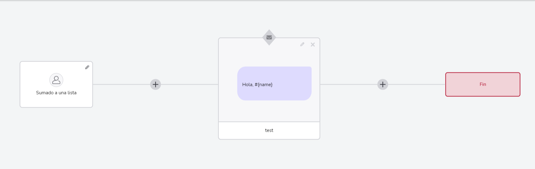 Independientemente de la forma que hayas utilizado para llegar al constructor, tu pantalla inicial muestra la regla de comunicación seleccionada y el flujo se define vinculando varias etapas entre si hasta llegar al final. Para utilizar esos bloques, utiliza las siguientes herramientas: