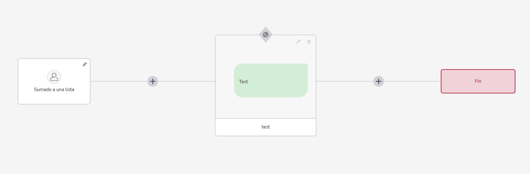 Independientemente de la forma que hayas utilizado para llegar al constructor, tu pantalla inicial muestra la regla de comunicación seleccionada y el flujo se define vinculando varias etapas entre si hasta llegar al final. Para utilizar esos bloques, utiliza las siguientes herramientas: