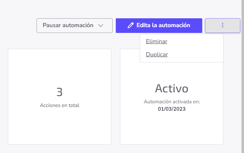 Para duplicar un flujo de automación, haz clic en el ícono icone.png y selecciona Duplicar. Para completar la acción, asigna un nombre a la copia y haz clic en Duplicar.