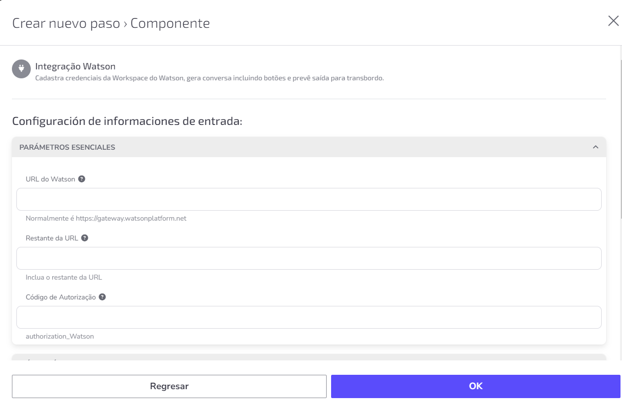 Crear nuevo Paso: Integración Watson