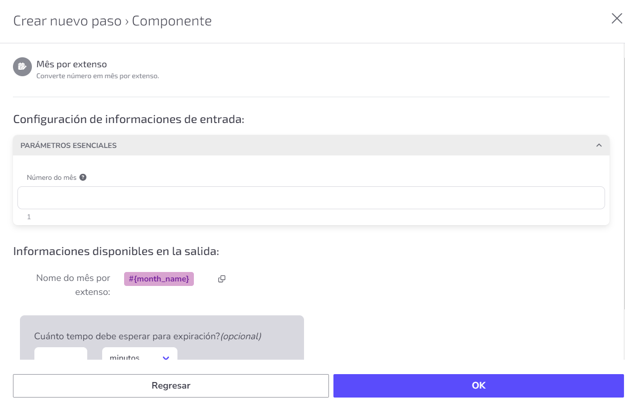 La funcionalidad de Mes por Extenso identifica el número proporcionado y devuelve el nombre completo del mes para su uso en el flujo.
