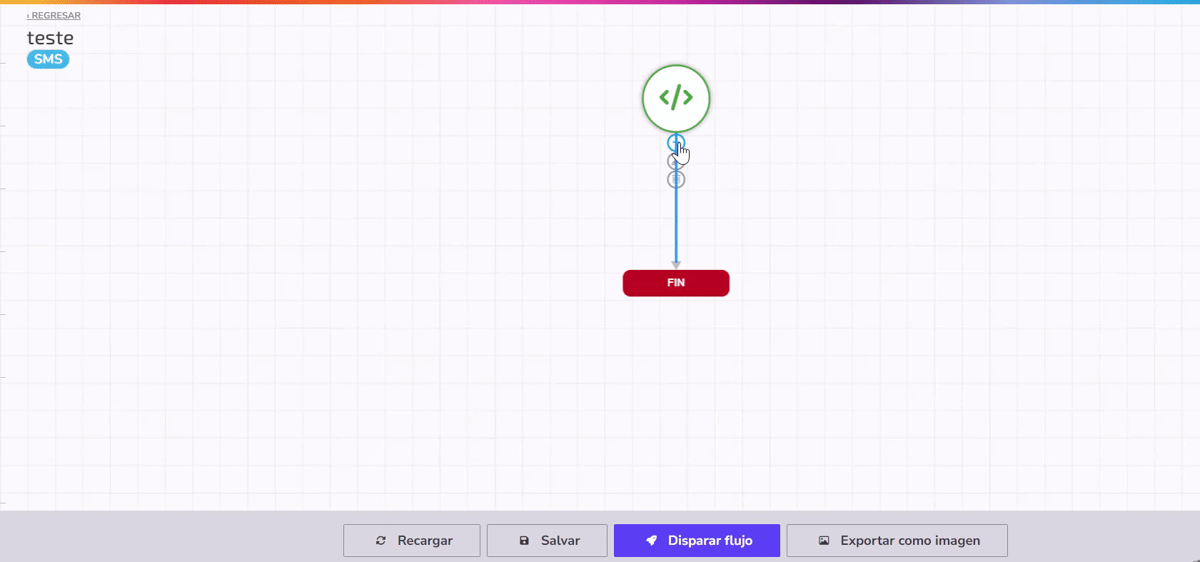 Aquí, puedes enviar un SMS durante un flujo completando los campos Título del paso (opcional) y Mensaje a ser enviada.
