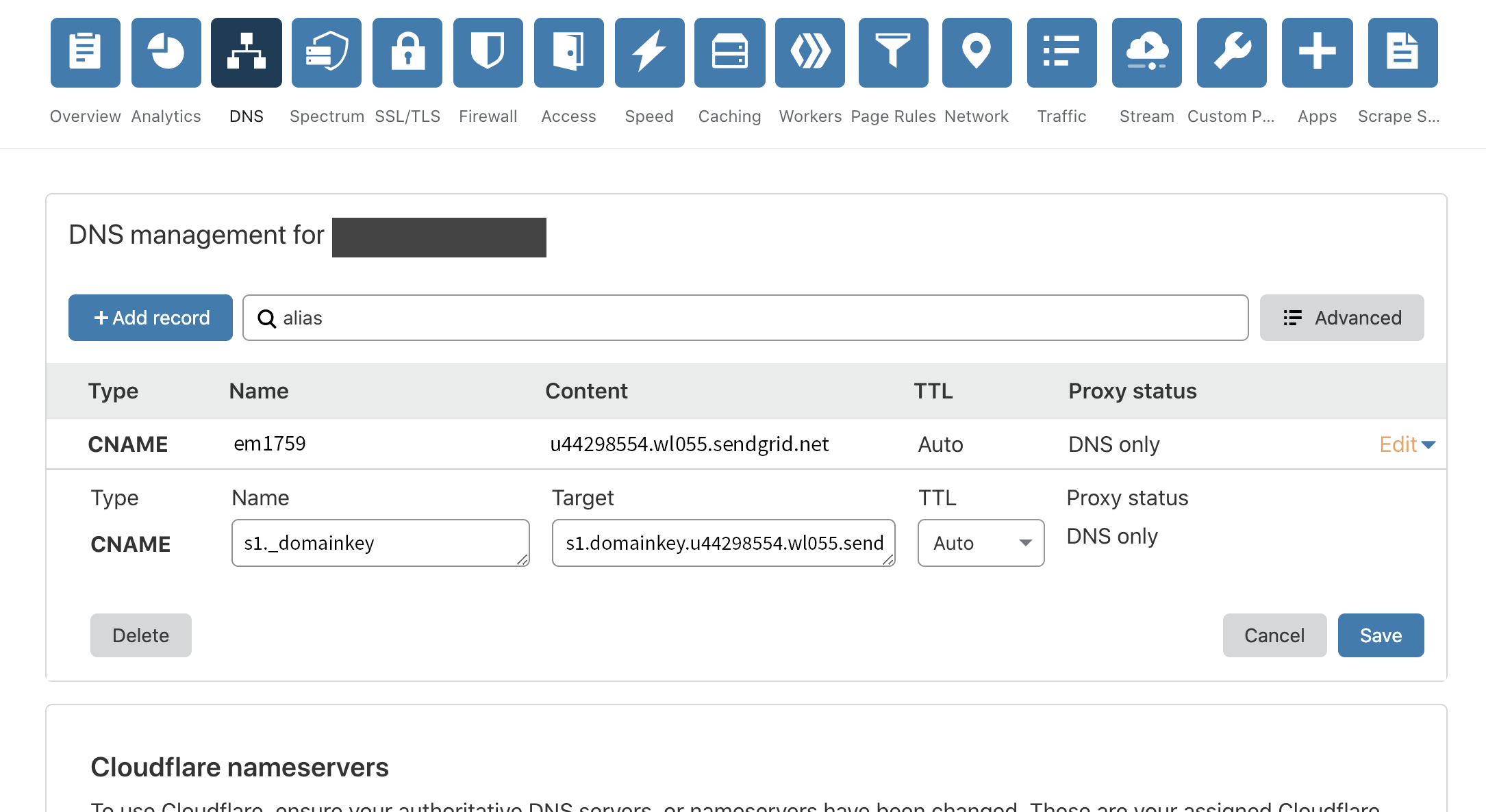 • Cinco (5) entradas de tipo CNAME – Responsables de validar el uso del dominio para el envío de mensajes.