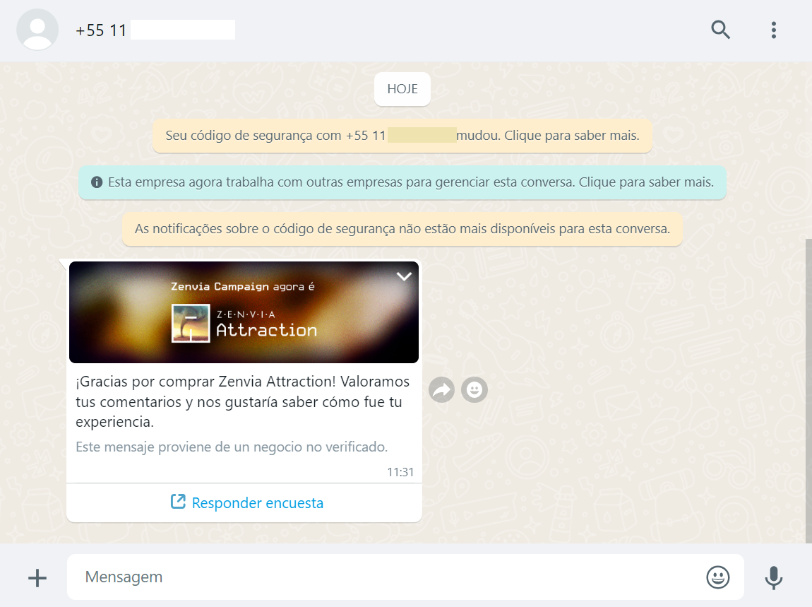 Cómo enviar un mensaje de WhatsApp con medios en Zenvia Attraction